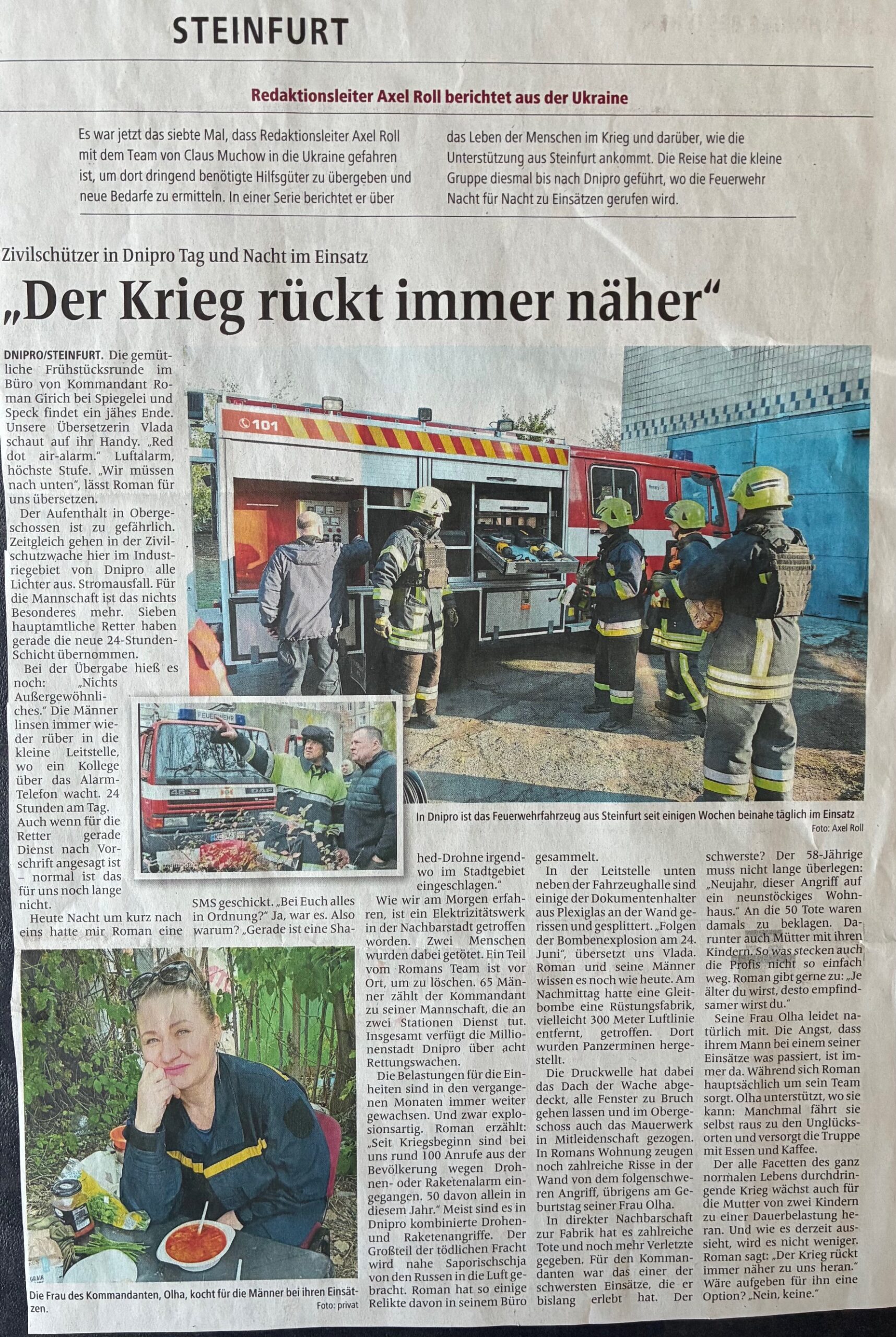 (Pressebericht von Axel Roll: „Der Krieg rückt immer näher“, Westfälische Nachrichten, 22.11.2025)